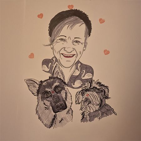 Maîtrisant l'anglais et l'allemand, cet artiste caricaturiste assure une communication fluide avec les invités internationaux pour une expérience fluide et engageante.