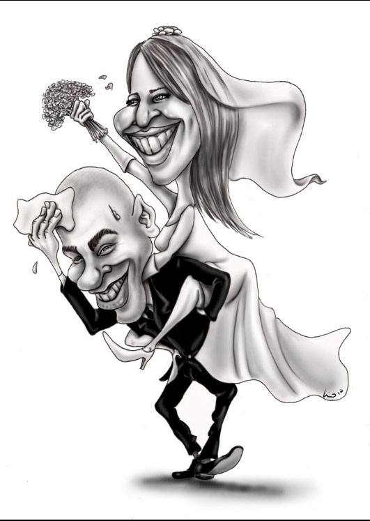 Notre artiste caricaturiste pour événements et mariages peut réaliser des caricatures en noir et blanc ainsi que des illustrations en couleur. Toutes ses caricatures, bandes dessinées et illustrations peuvent être personnalisées avec un logo, un nom, une date ou toute autre information que vous souhaitez inclure.