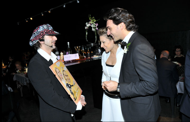Amical et bavard, notre artiste en direct se connectera rapidement avec les invités de votre occasion spéciale et les mettra à l'aise. Lors des mariages, il commencera par dessiner les jeunes mariés. Après avoir dessiné une caricature ou une bande dessinée en couleur pour la mariée et le marié, notre caricaturiste encouragera tout le monde à faire la queue pour les immortaliser sur papier.