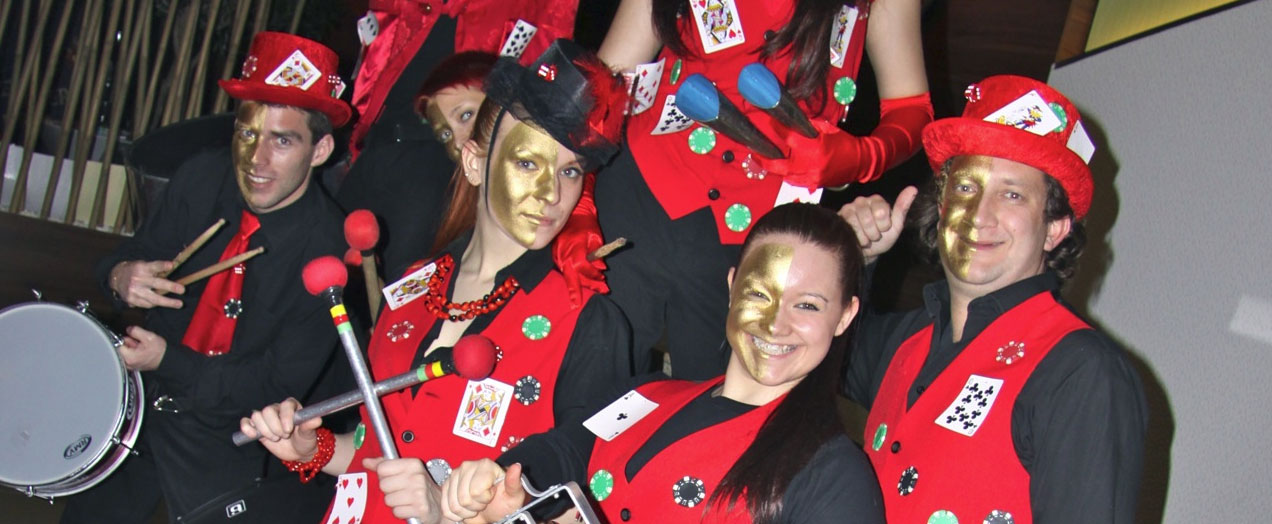 Cet orchestre de percussions est plein d'enthousiasme qui ne peut pas passer inaperçu. Une masse d'énergie, de rythme, de joie et de mouvement dans des costumes originaux de style CASINO. Avec leur musique pleine d'énergie, leur humour irrésistible et leur professionnalisme, le groupe fera rapidement lever les spectateurs!