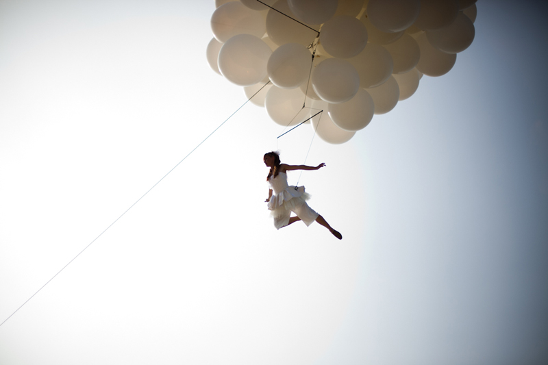 La combinaison de 300 ballons d'hélium blancs, d'un artiste du ciel talentueux et des bâtiments ou de l'architecture urbaine de votre ville peut créer une expérience visuelle impressionnante tout simplement impossible à oublier. Notre danseuse aérienne avec ballons effectuera des mouvements acrobatiques époustouflants tout en étant suspendue à des centaines de ballons d'hélium, ce qui ne manquera pas de captiver l'attention du public et de le laisser bouche bée.