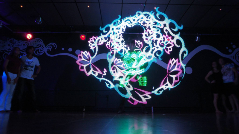 Acte LED fascinant avec des motifs hypnotisants et des graphiques personnalisés pour stupéfier les spectateurs.