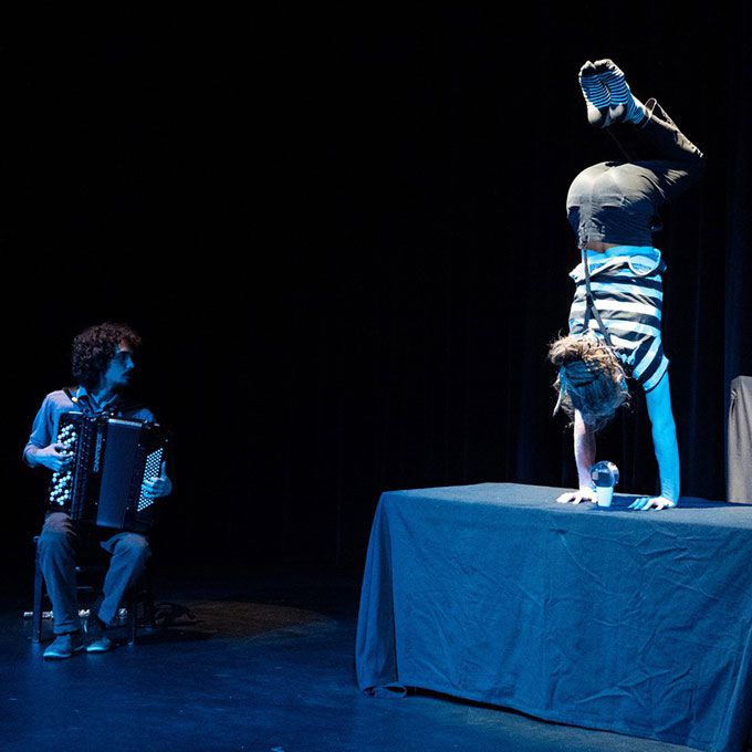 Un duo poétique avec un accordéon en direct ou d'autres instruments à travers le mime, le cirque, le théâtre et la magie pour plonger le public dans un royaume de fantaisie.