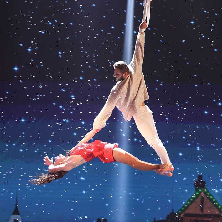 Notre duo de cirque aérien a acquis de nombreuses références impressionnantes, notamment Cirque du Soleil, Circus Flic Flac et Dinner Show Europa Park