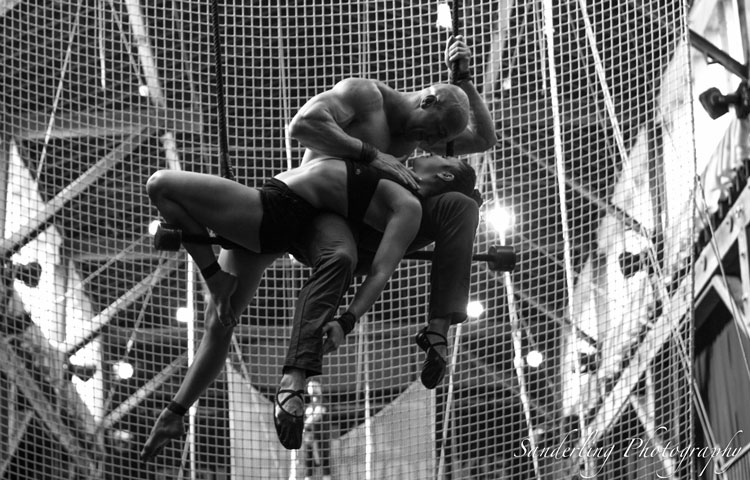 En plus de leur acte de trapèze en duo qui met en valeur des talents et une athlétisme incroyables, notre paire d'acrobates propose également une performance légèrement plus osée qui montre la pure luxure, le désir et la passion alors qu'ils se déshabillent mutuellement dans les airs, se saisissant mutuellement le corps et présentant des numéros aériens audacieux.