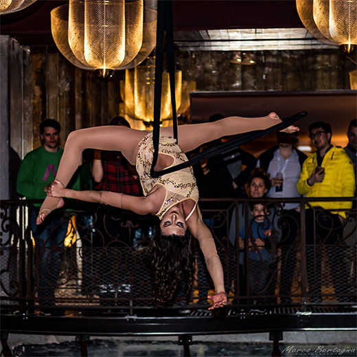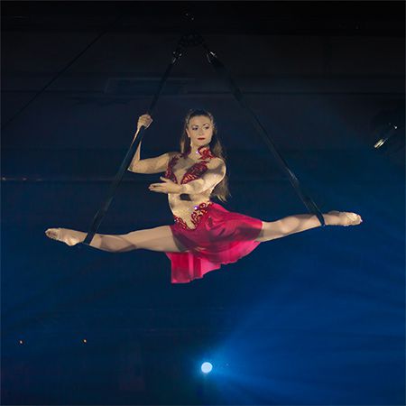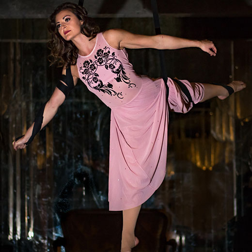 Une maître de tous les types de performances aériennes, elle se spécialise dans les sangles aériennes.