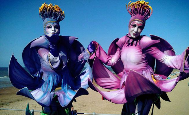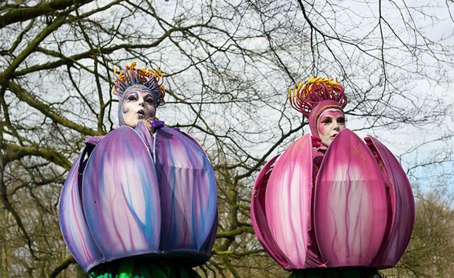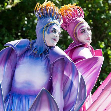 Leurs costumes aux pétales colorés et leurs échasses hautes les rendent visibles de loin, ajoutant de la couleur et de la magie aux grandes célébrations et aux événements en plein air.