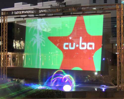 Un écran de rétroprojection haute résolution créé entièrement dans une cascade d'eau en chute libre !
