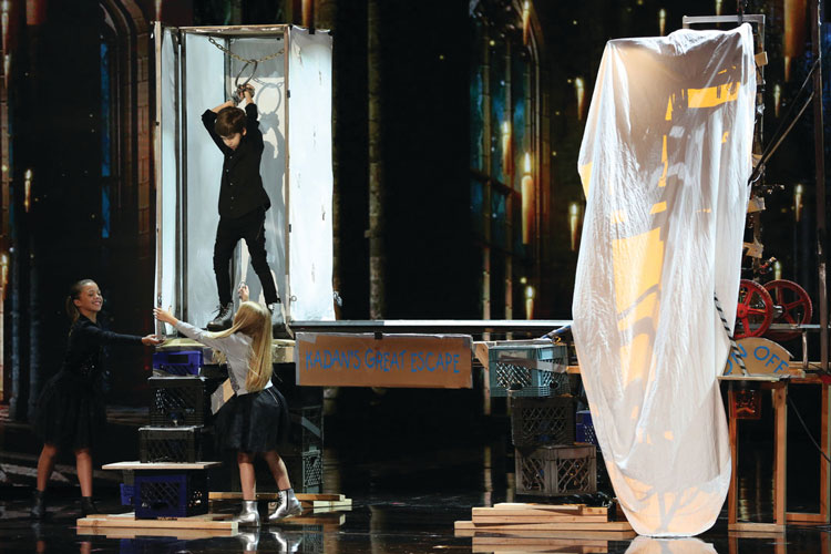 Alliant des tours de magie de proximité à de grandes illusions sur scène, ce duo dynamique ne laisse jamais de place à l'ennui, apparaissant, disparaissant, s'échappant, se sciant mutuellement en deux et sortant de petites mallettes.