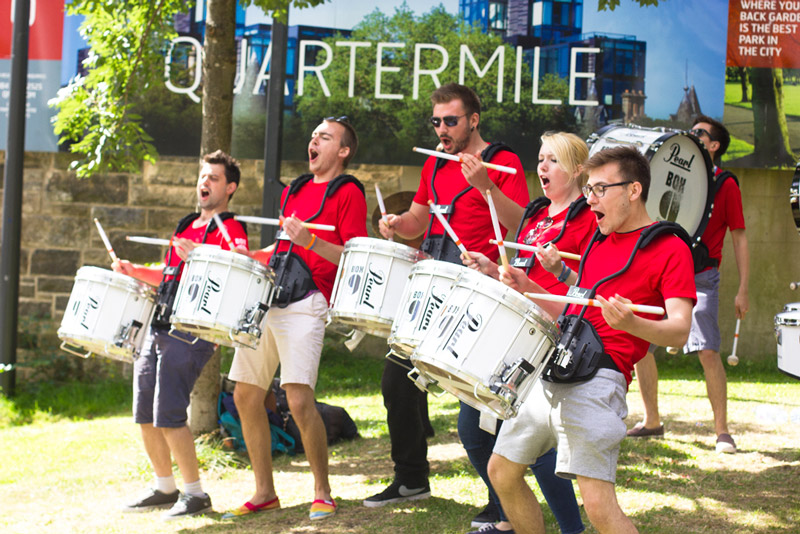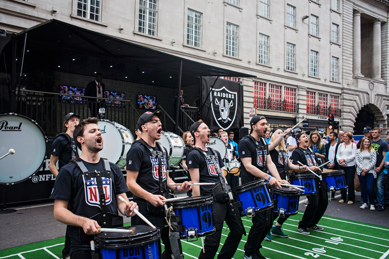 L'ensemble Drumline du Royaume-Uni se produit et travaille lors d'événements d'entreprise, de lancements de produits, de festivals, d'équipes sportives, de télévision, de publicité, de cinéma, ainsi que lors d'événements communautaires et privés. Ils organisent également des ateliers, des masterclasses et d'autres projets éducatifs avec des personnes de tous âges et de toutes capacités afin qu'elles puissent découvrir la drumline et apprendre de manière pratique la percussion.