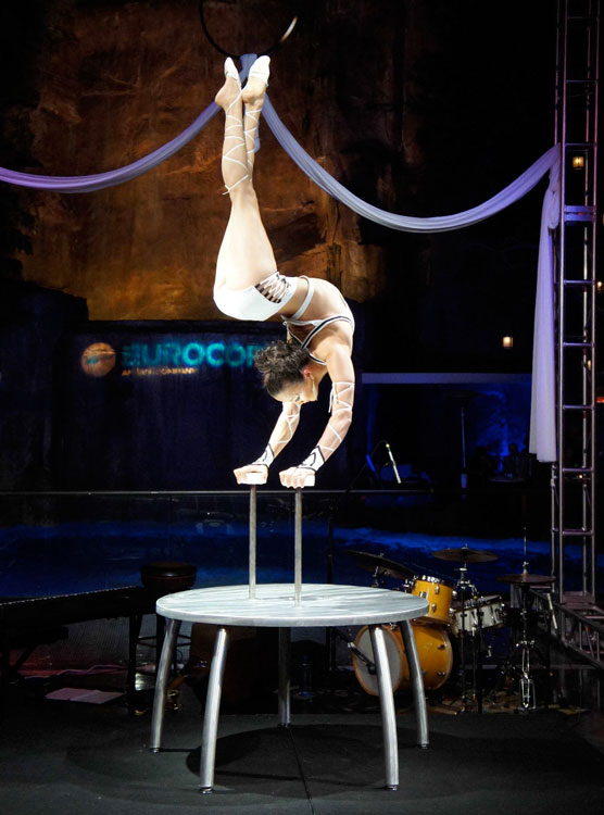 Une artiste qui s'est entraînée avec le Cirque d'État mongol, notre artiste de cirque est une artiste très polyvalente qui peut se produire en solo ainsi qu'en duo, en groupe ou avec du feu.