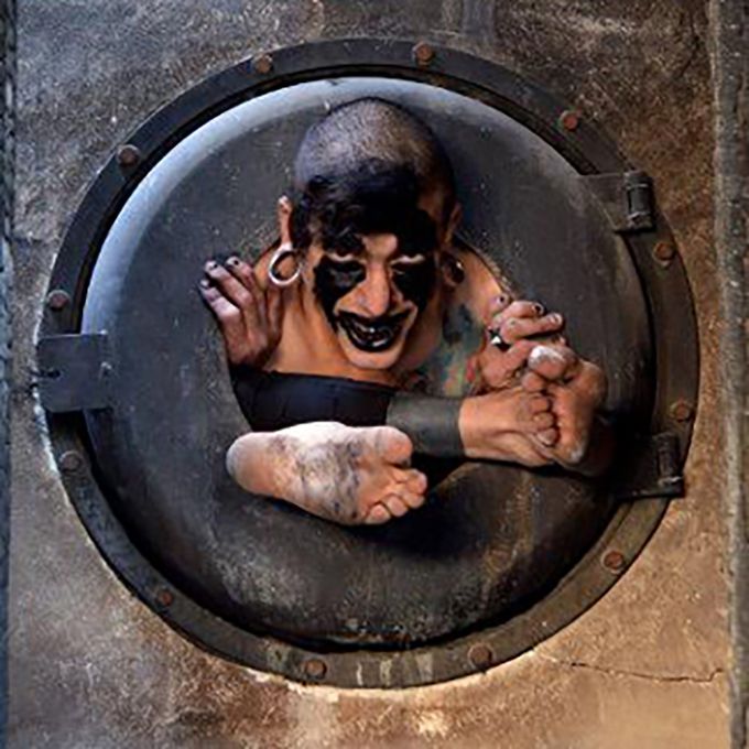 Un artiste de freakshow qui n'est pas pour les âmes sensibles, ce contorsionniste se tord dans toutes sortes de positions contre nature !
