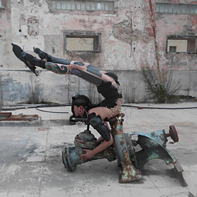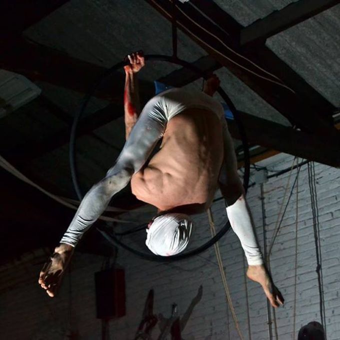 Ce performer a reçu une formation dans une large gamme de compétences de cirque et peut inclure des éléments aériens et suspendus dans sa performance également.