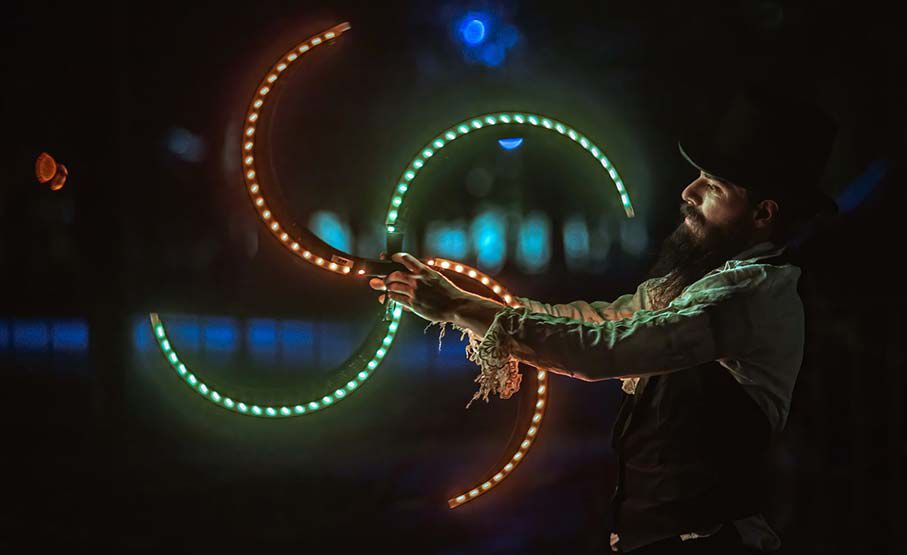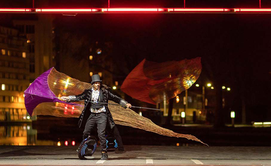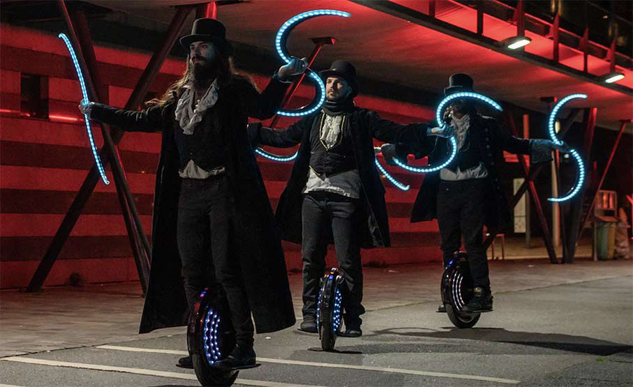Nos artistes LED sont des spécialistes du monowheel, un monocycle électrique qui vous donne l'étrange illusion de flotter.