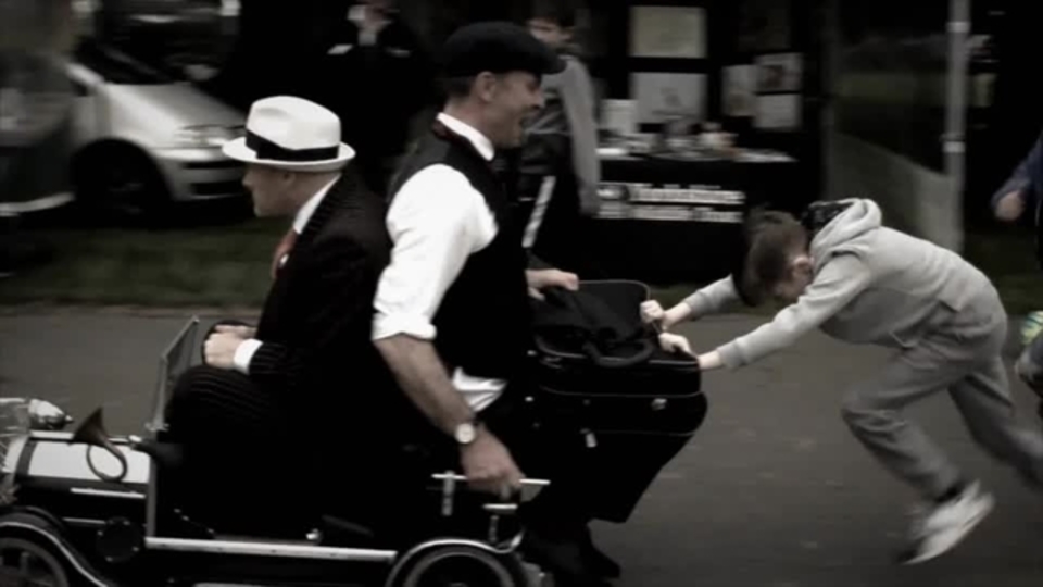 Les Gangsters comiques des années 1920 choisiront un endroit pour descendre de leur voiture miniature et offriront du divertissement interactif avec des jongleries, des danses swing et des pitreries comiques. Ils fournissent également, depuis la voiture, une bande son feel good qui peut être adaptée en conséquence.