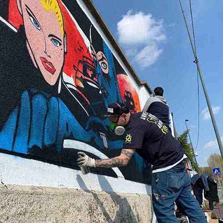 Basé en Italie, il peut travailler avec des bombes aérosols ou des pinceaux, et collaborer avec vous pour créer des œuvres d'art sur mesure pour des événements d'entreprise, des festivals et des salons professionnels.
