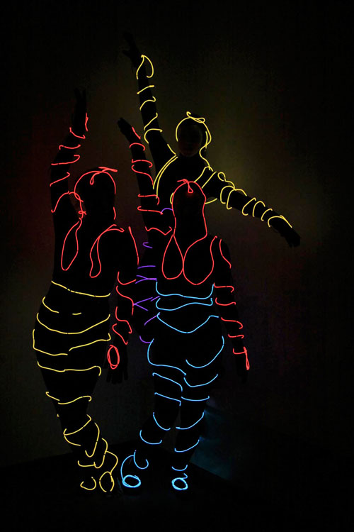Avec un éclairage ultraviolet, des costumes en fibre optique et EL wire et des marionnettes plus grandes que nature, notre équipe de danseurs et de spécialistes crée un environnement mystérieux à partir duquel des créatures peuvent évoluer et se transformer en nouveaux personnages et fusions lumineuses.