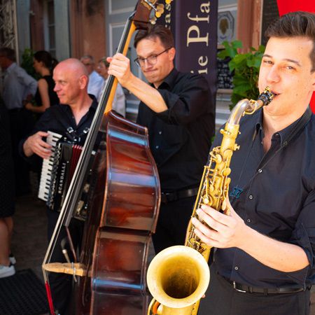 Avec leur talent musical exceptionnel à la contrebasse, à la guitare, au saxophone, à l'accordéon et au chant, ces artistes aux multiples talents sont un véritable plaisir à regarder.