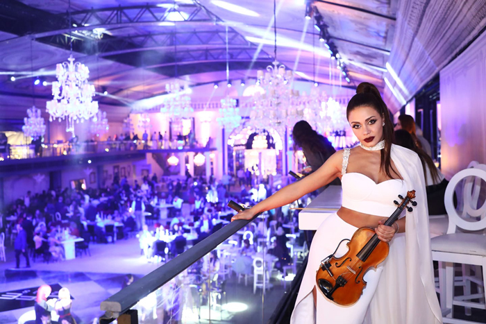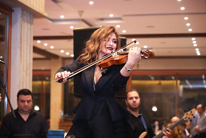 La violoniste domine la scène avec son incroyable talent musical et fait sensation avec sa présence énergique sur scène. Elle est toujours en mouvement et danse pendant qu'elle joue et peut être réservée avec un groupe de quatre danseurs ou plus, avec des chorégraphies de danse élaborées. Cette violoniste exceptionnelle de Beyrouth est disponible en solo ou avec son groupe de cinq musiciens, qui peut également être agrandi avec des musiciens supplémentaires.