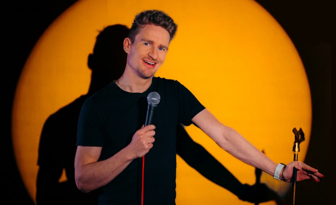 Il crée des blagues bien pensées et les livre avec beaucoup d'énergie, tout en se sentant complètement à l'aise sur scène, garantissant une performance captivante.