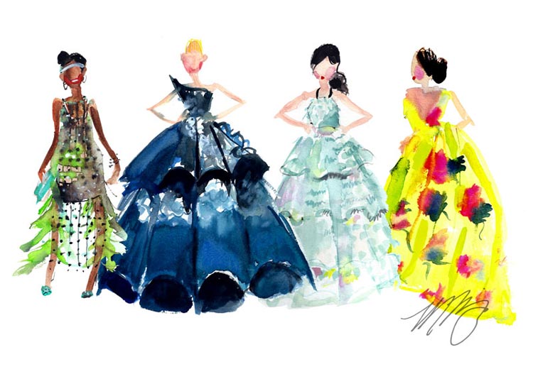 Ayant reçu des éloges de la part de personnalités de la mode telles que Bill Cunningham du New York Times, Suzy Menkes de Vogue et Linda Fargo de Bergdorf Goodman, cette illustratrice exceptionnelle est le complément parfait à tout événement.