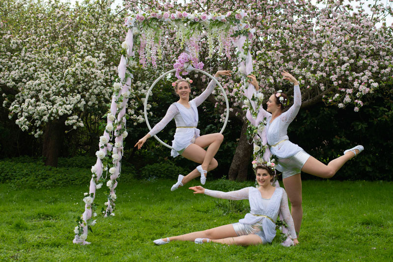 Parfaitement adapté aux adultes et aux enfants, ce divertissement estival est une façon sophistiquée et élégante de créer de la magie et de l'émerveillement. Parfait pour les garden parties, les lancements d'événements, les festivals, les mariages, les fêtes estivales d'entreprise et bien plus encore, nos danseurs aériens ne manqueront pas d'impressionner.