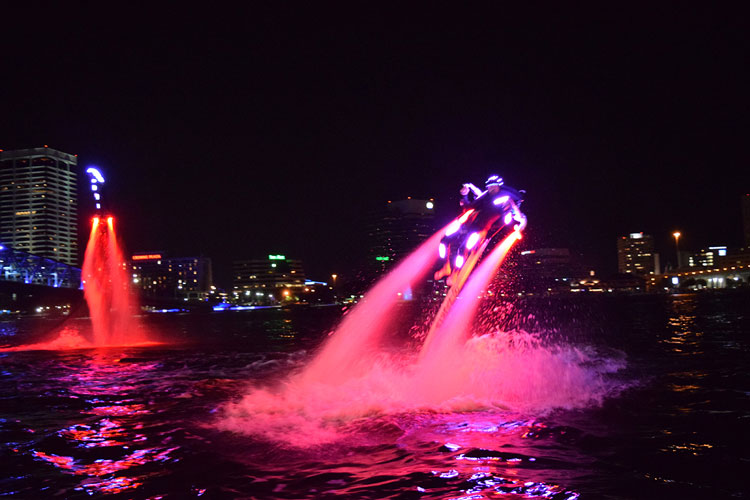 Un spectacle hydrosport qui intègre des sports nautiques extrêmes, la technologie des jetpacks et des éclairages LED fluorescents est le spectacle aquatique ultime. Une activité hydrosport de plus en plus populaire parmi les touristes et les amateurs d'adrénaline, l'hydroflight est un sport extrêmement impressionnant qui est difficile à maîtriser, mais une fois perfectionné, ce sport complexe captive l'attention de tous les passants !
