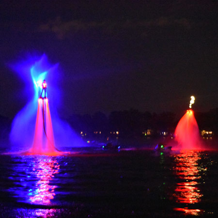 Regardez l'eau prendre vie avec la lumière devant vos yeux émerveillés. Une équipe de professionnels crée l'ultime spectacle hydrosport en utilisant leur jetpack à LED, leurs compétences impressionnantes et des effets de lumière époustouflants. Un spectacle aquatique unique en son genre, futuriste, captivant et visuellement époustouflant.