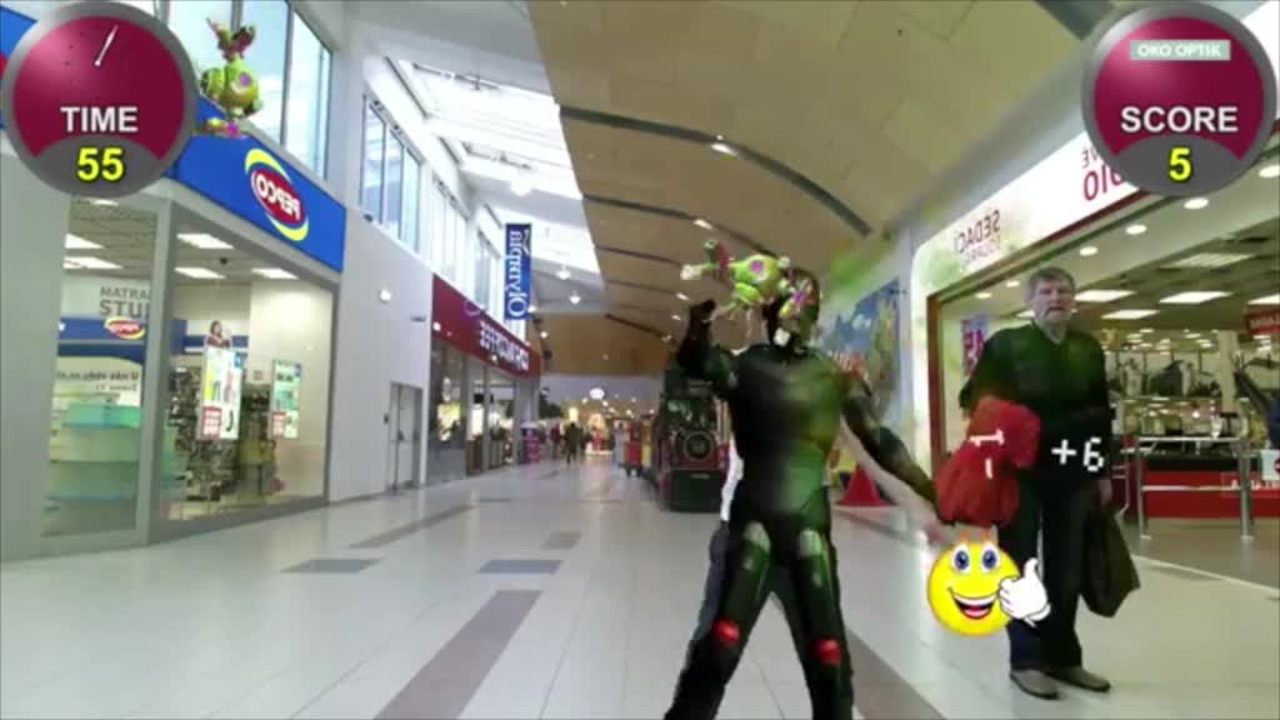 Engagez les clients avec ce jeu amusant de réalité augmentée où ils doivent attraper une icône de votre logo ou produit pour collecter des points.