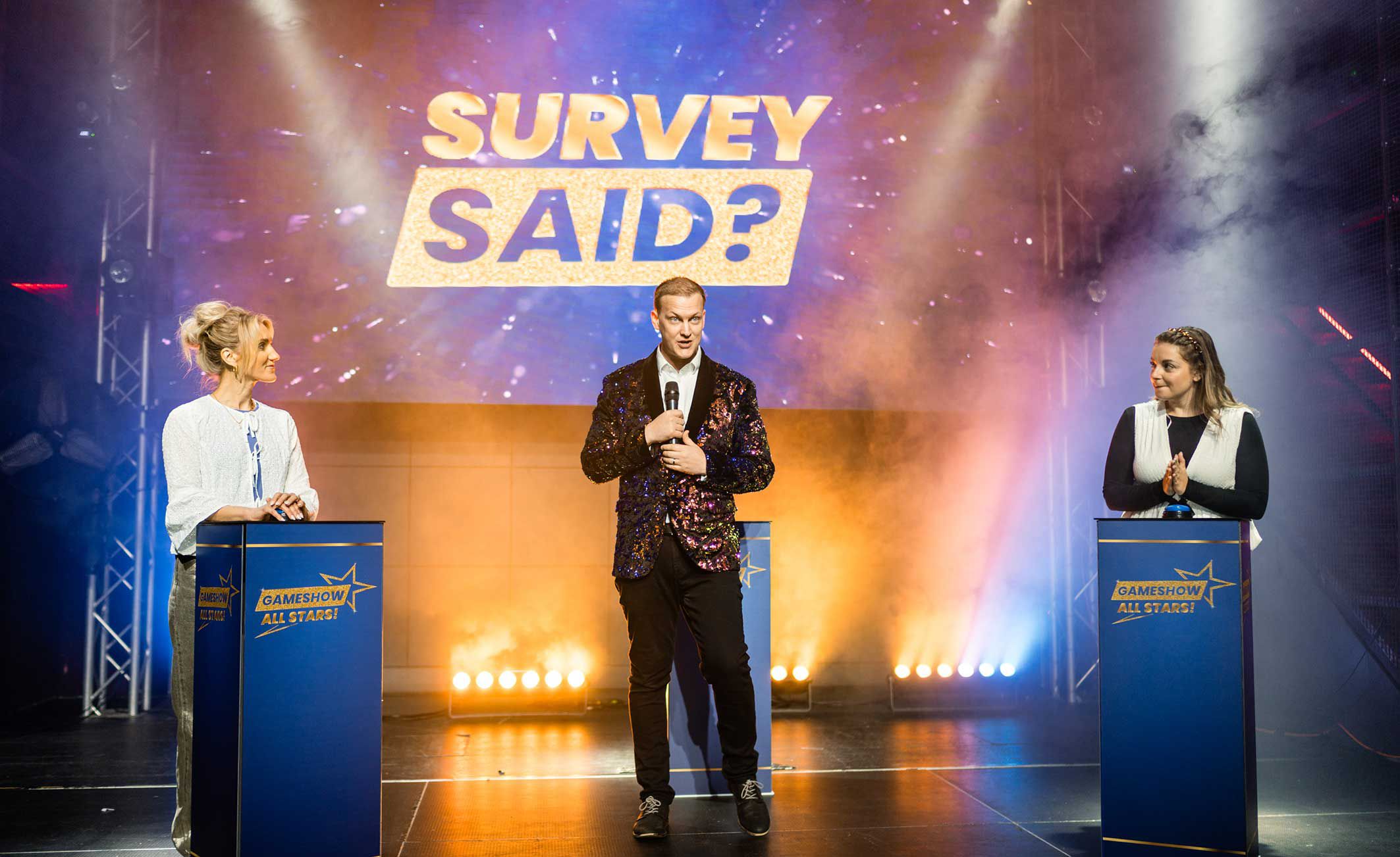 Engagez ce jeu interactif avec des valeurs de production haut de gamme pour votre prochain événement. Comprenant plusieurs jeux de style jeu télévisé classique animés par un présentateur charismatique