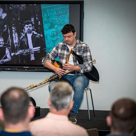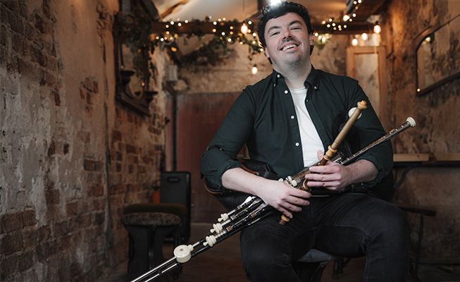 Cet incroyable cornemuseur uilleann, titré Champion Senior du Comté, d'Ulster et d'Irlande, ajoute du prestige et de l'authenticité à votre événement.