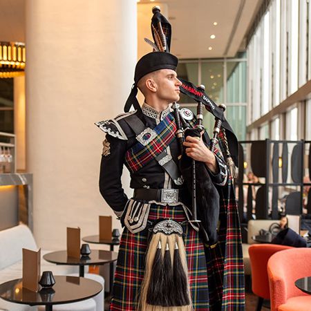 " Nous sommes venus du Canada pour nous marier en Écosse le 2 août 2022 au château de Cromlix à Dunblane. [Les sonneurs de cornemuse d'Écosse] ont rendu le mariage parfait en jouant aux moments opportuns, le transformant en un conte de fées. Ce ne serait pas un mariage écossais sans un excellent joueur de cornemuse. Nous recommandons ce garçon sans hésitation ! "