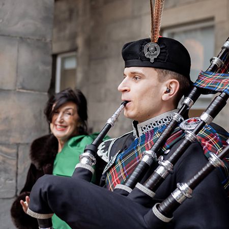 " Nous avons eu une magnifique performance de cornemuse et de tambour celtique à notre mariage par l'excellent [Cornemuseurs Écosse]. J'ai été particulièrement impressionné par leur interprétation de la Chanson du Bateau de Skye alors qu'ils nous accompagnaient jusqu'à notre table d'honneur, et j'ai été ravi de les entendre alors que nous pagayions à travers le Loch Ard. Merci [Cornemuseurs Écosse] pour votre contribution à une journée incroyable. Professionnels, talentueux et formidables les deux "