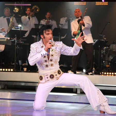 Accompagné d'un orchestre complet et de danseuses vêtues de paillettes, notre spectacle sur scène d'Elvis Presley est un véritable festin pour les yeux et les oreilles. Que vous recherchiez un imitateur d'Elvis pour charmer les invités lors de votre réception de mariage, un sosie de star de la pop pour ajouter une touche de qualité à votre cérémonie de remise de prix ou un sosie d'Elvis pour poser en photo avec les invités, notre hommage pop à Elvis Presley se démarque avec ses performances live de haute qualité.