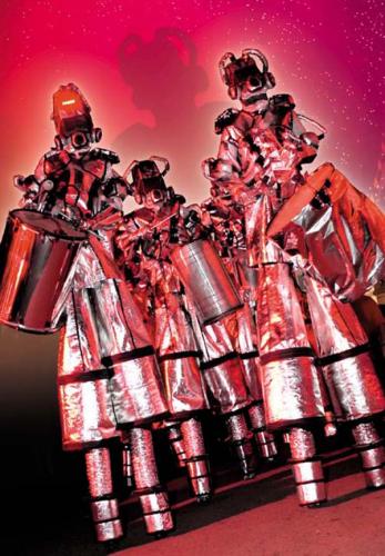 Leurs costumes lumineux accrocheurs et leur puissant rythme et chorégraphie ont captivé les audiences lors de festivals de rue, de lancements de produits et de défilés à travers le monde. Les robots batteurs conviennent à un public international de tous âges et peuvent se produire immobiles ou en déambulation.
