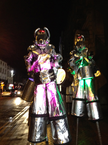 Ces robots futuristes sont un ensemble de percussion/batterie visuellement époustouflant et à fort impact, qui peuvent être redémarrés avec un nouvel éclairage embarqué pour une performance en soirée.