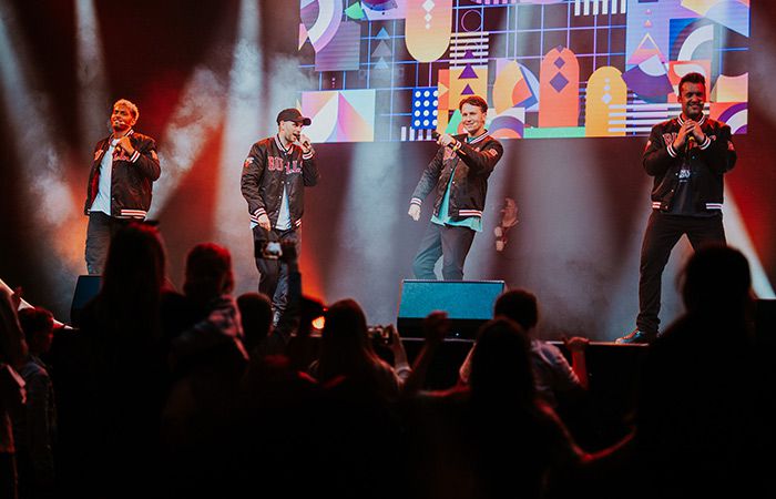 Nos patineurs chanteurs sont disponibles dans une variété de formations et peuvent être accompagnés de patineuses chantantes glamour et de performeurs de cascades en BMX épiques.