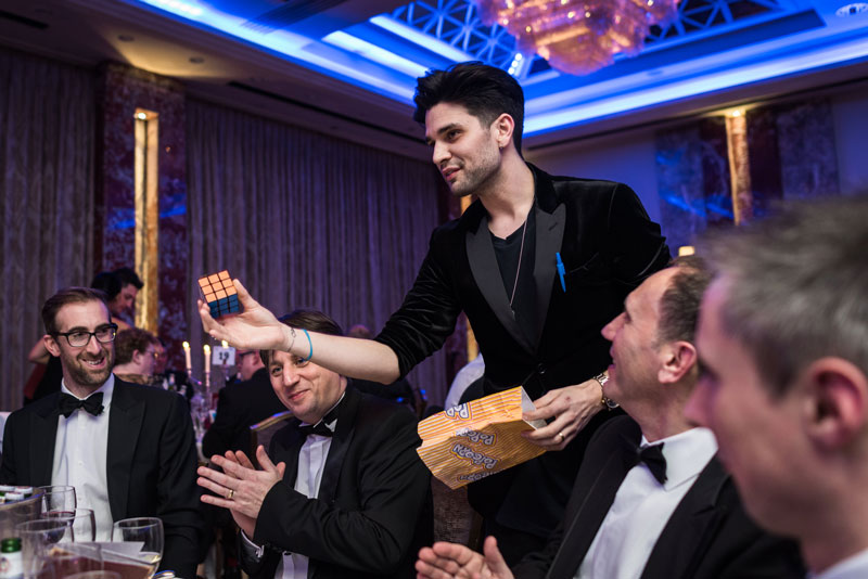 Capable également de créer des cadeaux de marque, tels que des Rubik's cubes avec le logo de votre entreprise, notre magicien pour les événements a toujours un tour dans sa manche pour des performances percutantes.