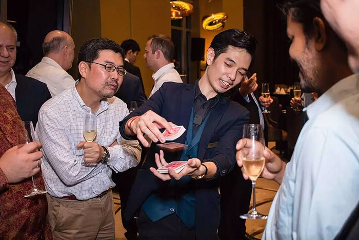 Fournissant une excellente forme de magie interactive, notre Magicien de proximité de Singapour sait exactement comment impliquer vos invités et créer une expérience très spéciale lors de votre événement. Ce type de divertissement événementiel est parfait pour susciter l'enthousiasme parmi les invités et est le moyen idéal de briser la glace lors des événements d'entreprise.