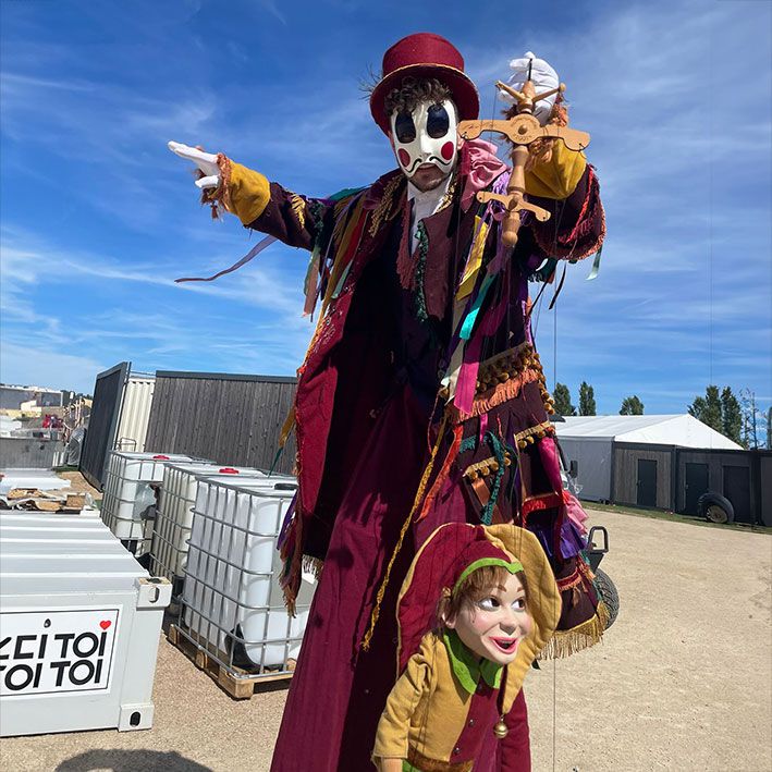 Accompagné de sa marionnette arlequin, notre maître marionnettiste déambulant sur échasses enchante les publics de tous âges et de toutes les catégories socio-démographiques.