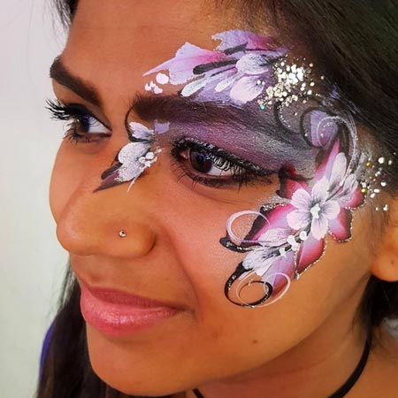 Transformant les invités en créations époustouflantes, cette maquilleuse peut adapter chaque design exactement à ce que vos invités désirent, que ce soit un visage pailleté, un visage entièrement peint ou tout autre design et style spécifique.