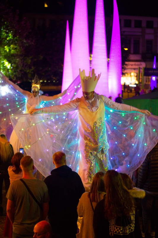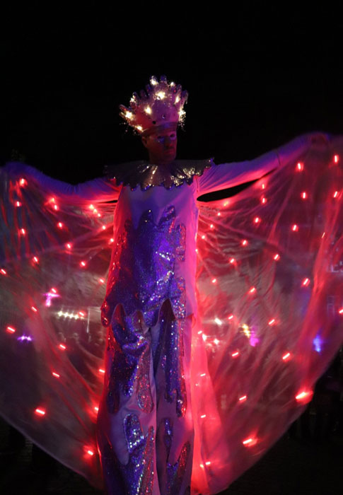 Équipées d'ampoules lumineuses changeant de couleur, les ailes de nos échassiers à LED apportent de la lumière et de la couleur à votre événement. Créant une atmosphère magique autour d'eux, ces personnages enchanteurs sont garantis pour captiver les personnes de tous âges.