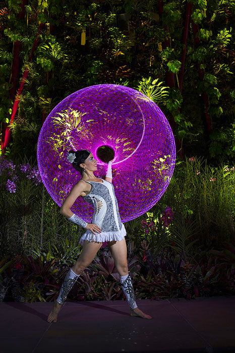 En utilisant jusqu'à quatre cerceaux à la fois, l'acte de cerceau lumineux à LED apporte un spectacle visuel énergique et impactant éclairé lors d'événements en Allemagne ou n'importe où dans le monde. Les artistes de cerceau lumineux féminins incroyablement talentueux proposent des routines époustouflantes qui fascinent le public. Grâce aux cerceaux à LED technologiquement avancés, les séquences et les graphiques sont entièrement programmables. Elle est également disponible pour se produire dans des tenues personnalisées adaptées à l'événement.