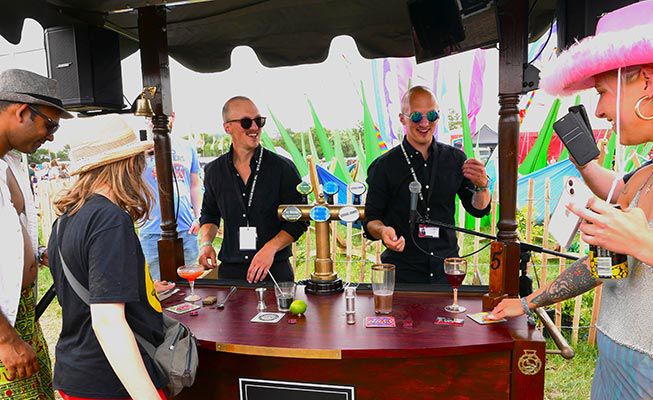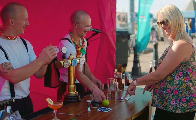 Un bar mobile avec une différence ! Au lieu de servir des boissons, cette installation de pub cool a des objets qui émettent des sons lorsqu'ils sont touchés.