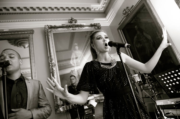 Notre groupe de fête peut être réservé en tant que groupe de 6 musiciens ou de 8 musiciens, offrant un divertissement fantastique pour les petits événements d'entreprise ou les fêtes privées avec 50 à 150 invités.