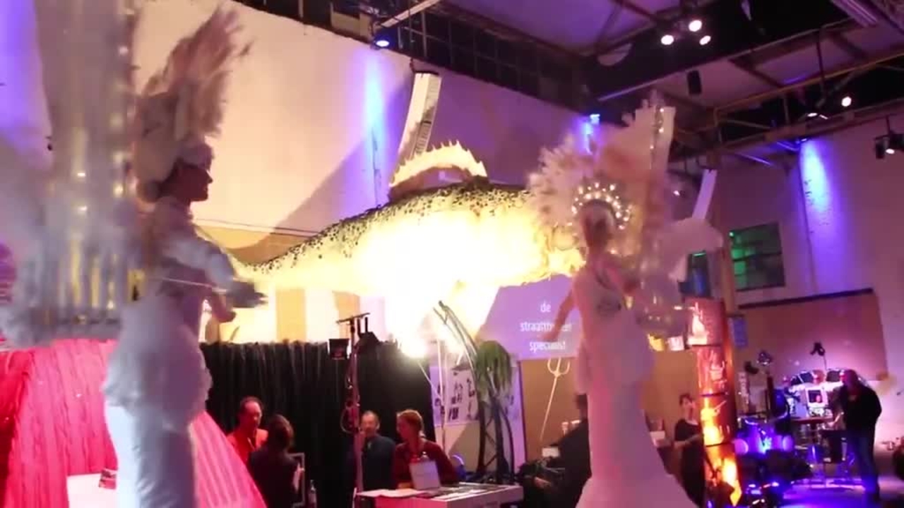 Vêtus de tenues entièrement blanches avec des lumières LED intégrées, les costumes de nos artistes comprennent également des coiffes en plumes uniques et époustouflantes.