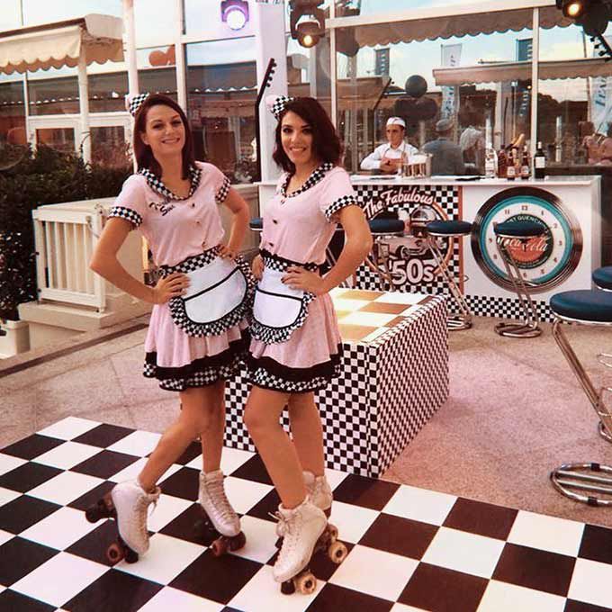 En tant qu'animateurs de mix-and-mingle, nos hôtes et hôtesses en rollers peuvent interagir avec les invités, distribuer du matériel promotionnel et poser pour des photos.