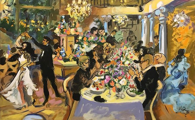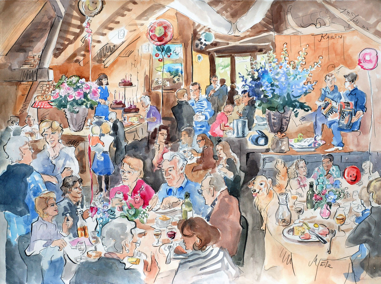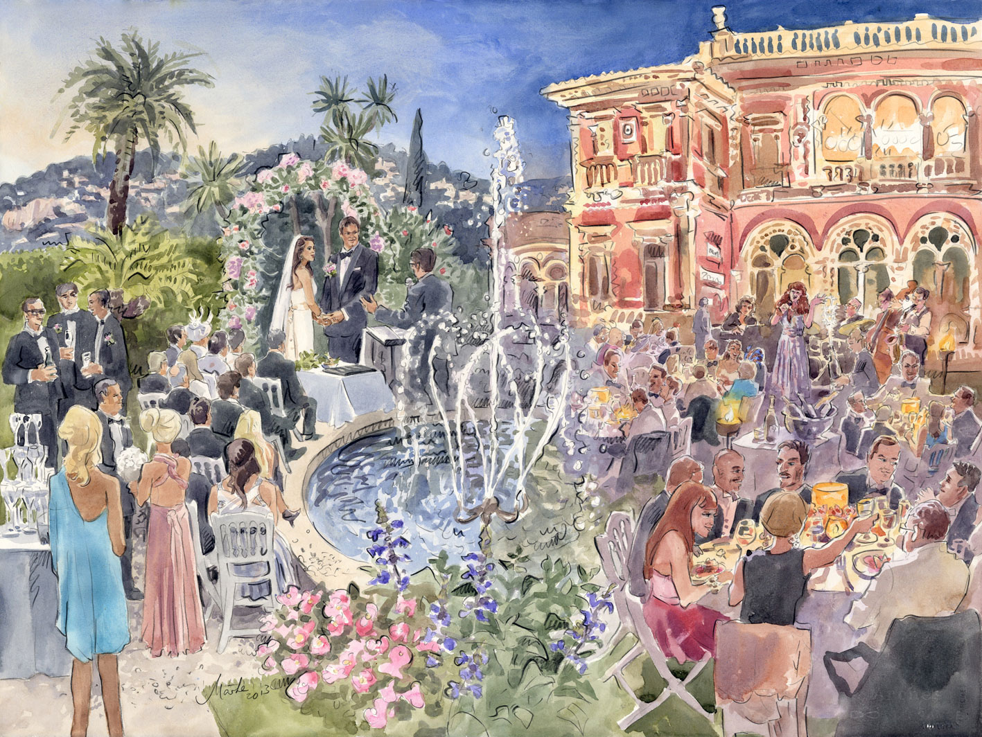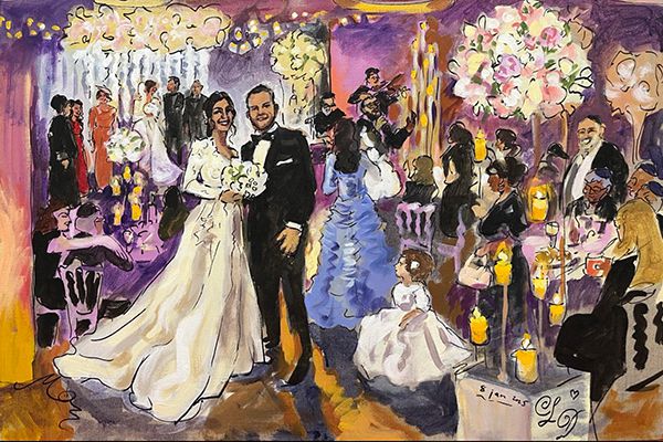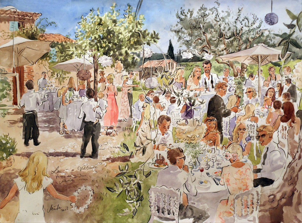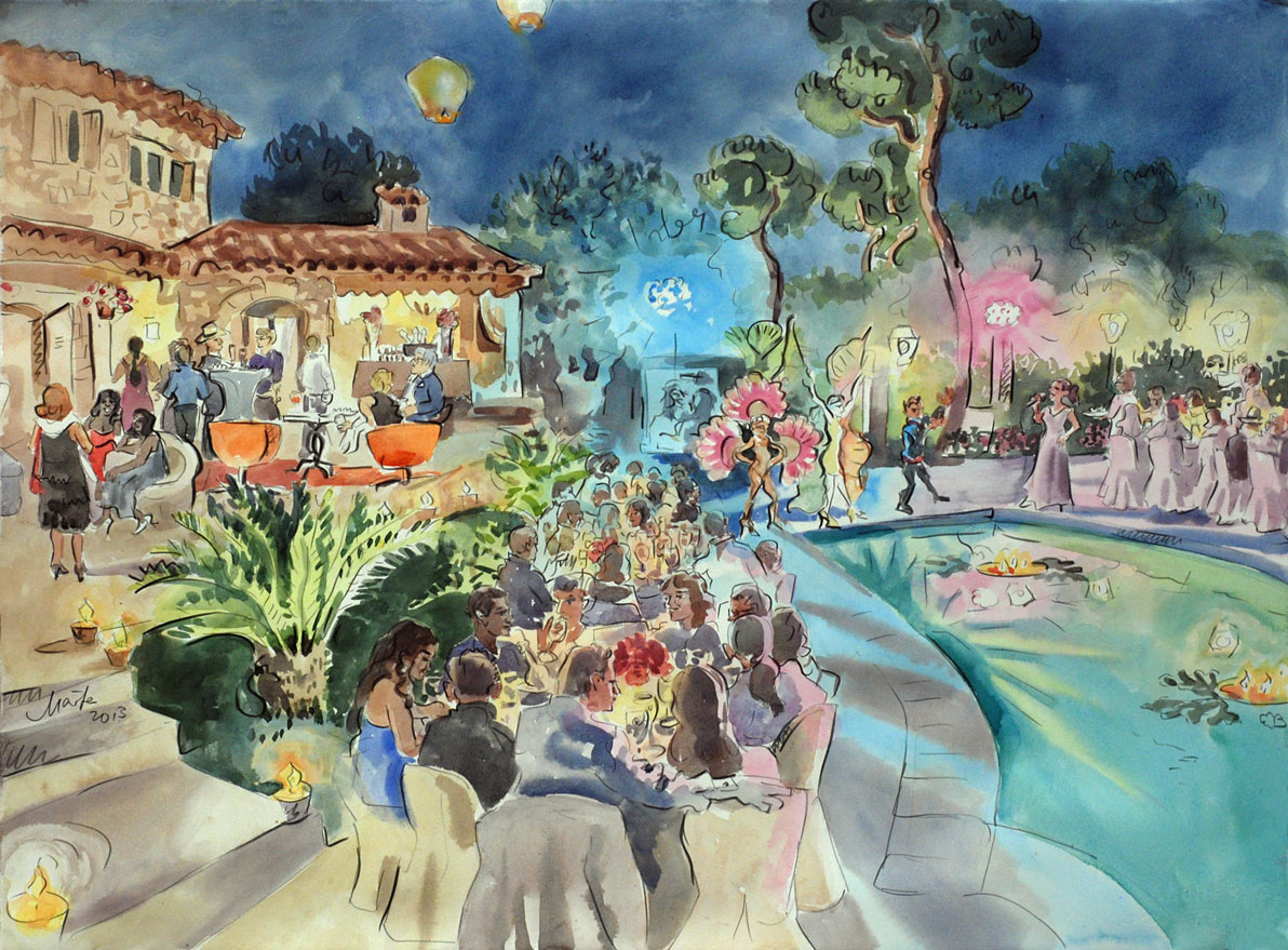 La peintre d'événements Marta est bien connue pour son extraordinaire capacité à créer des peintures-documentations, recréant des ambiances qui racontent des histoires de lieux et d'événements à partir de photographies.
