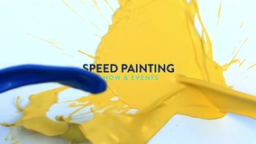 Le peintre rapide utilise de la colle pour dessiner une image reconnaissable, ne révélant la pièce finie que lorsqu'il lance un nuage de paillettes ou de peinture sur la toile.