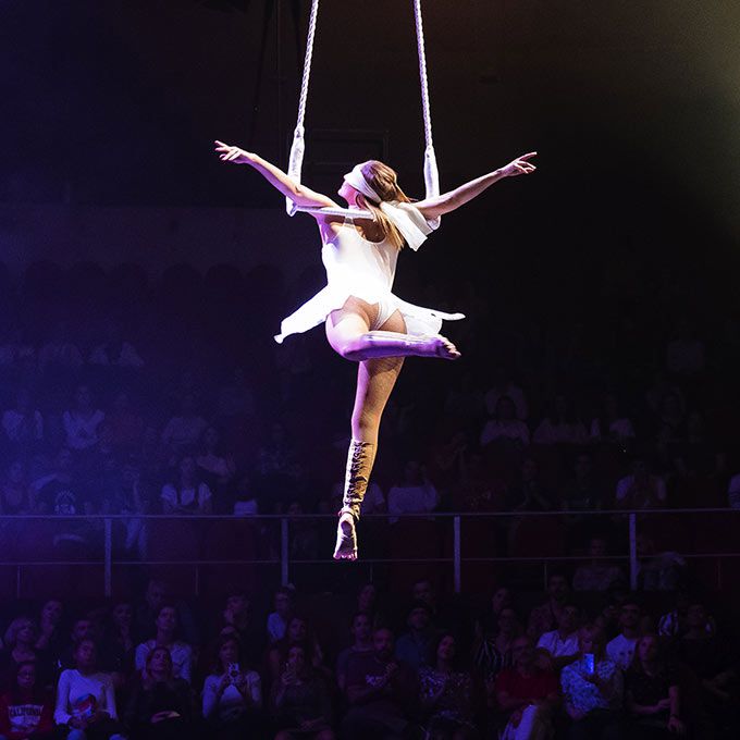 La beauté et l'émotion de la danse aérienne au trapèze, associées à une excellente technique, transportent le spectateur dans un monde différent.